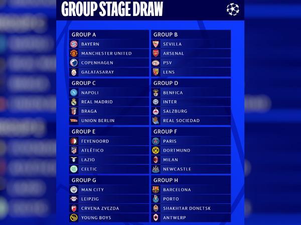 A Uefa sorteou nesta quinta-feira (31) no Grimaldi Forum, em Mônaco, os grupos da Liga dos Campeões 2023/24. O destaque ficou para o Grupo G, que conta com o PSG e com dois times que já conquistaram a Europa.RESULTADO DO SORTEIOGrupo A: Bayern de Munique, Manchester United, Copenhague e GalatasarayGrupo B: Sevilla, Arsenal, PSV e LensGrupo C: Napoli, Real Madrid, Braga e Union BerlimGrupo D: Benfica, Inter de Milão, Red Bull Salzburg e Real SociedadGrupo E: Feyenoord, Atlético de Madrid, Lazio e CelticGrupo F: PSG, Borussia Dortmund, Milan e NewcastleGrupo G: Manchester City, RB Leipzig, Estrela Vermelha e Young BoysGrupo H: Barcelona, Porto, Shakhtar Donetsk e Royal AntwerpO Grupo F se transformou no "grupo da morte". O sorteio colocou o cabeça de chave PSG junto com Borussia Dortmund, Milan e Newcastle. Atual campeão, o Manchester City caiu em grupo relativamente tranquilo. Além da equipe de Pep Guardiola, o Grupo G conta com RB Leipzig, Estrela Vermelha e Young Boys.Os dois primeiros colocados de cada chave avançam às oitavas de final. Os líderes carregam vantagem de decidirem o confronto eliminatório em casa. Os terceiros de cada grupo garantem uma vaga nos playoffs da Liga Europa.Os ex-jogadores Éric Abidal e Joe Cole foram os responsáveis por sortear os grupos. Os dois possuem conexão com Wembley, palco da próxima final: o francês ergueu a taça da Liga dos Campeões no estádio em 2011, com o Barcelona; Cole é nascido em Londres e fez carreira no Chelsea.QUANDO SERÃO OS JOGOS?1ª rodada: 19 e 20 de setembro2ª rodada: 3 e 4 de outubro3ª rodada: 24 e 25 de outubro4ª rodada: 7 e 8 de novembro5ª rodada: 28 e 29 de novembro6ª rodada: 12 e 13 de dezembroÚLTIMA CHAMPIONS COM FASE DE GRUPOSA partir da temporada 2024/25, o formato com 32 times será substituído. O modelo consagrado dará lugar a uma primeira fase com 36 equipes e sem chaves definidas.Os clubes serão separados em quatro potes. Cada um enfrentará duas equipes de cada divisão, uma em casa e outra fora, totalizando oito jogos na fase inicial, dois a mais que no atual formato. A classificação para o mata-mata será determinada pela pontuação geral.Outra importante mudança é que não haverá mais "classificação de consolação" para a Liga Europa. Atualmente, os terceiros colocados dos grupos ganham uma vaga na fase de playoffs da segunda principal competição europeia.