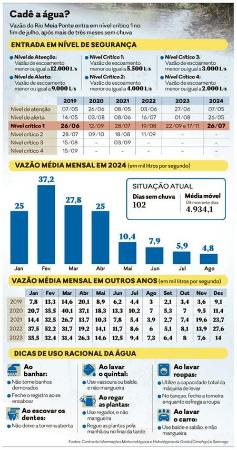 Após mais de três meses sem precipitação, a vazão do Rio Meia Ponte entrou em nível crítico no fim de julho, registrando média de 4,9 mil litros por segundo (L/s) em sete dias. O manancial não atingia o nível de criticidade de forma tão precoce desde 2019, quando a vazão reduzida foi registrada um mês antes do que o observado neste ano. E a situação deve persistir por mais meses, já que a tendência é de que as chuvas retornem apenas em meados de outubro.O Meia Ponte é responsável pelo abastecimento público de 36% da cidade de Goiânia, e atende parte da Região Metropolitana, como Aparecida de Goiânia, Goianira e Trindade. Dessa forma, a vazão é acompanhada diariamente pelo Centro de Informações Meteorológicas e Hidrológicas de Goiás (Cimehgo) para que medidas sejam tomadas diante de cenários de menor reserva de água. Ao todo, são seis níveis de segurança, que variam do nível atenção ao nível crítico 4.Neste ano, o ingresso no nível crítico 1, que significa que a vazão de escoamento é igual ou menor que 5,5 mil L/s, ocorreu no último dia 26. Em 2021, a entrada aconteceu apenas dois dias depois, em 28 de julho. Mas o recorde foi em 2019, um ano marcado por vazão média mensal abaixo do registrado nos anos consecutivos, que o nível de segurança foi atingido de forma ainda mais célere, em 26 de junho. Naquele ano, em setembro, o Meia Ponte marcava o nível mais crítico, com vazão menor que 2 mil L/s. Desde então, o manancial chegou apenas ao nível crítico 3, o penúltimo da classificação, em 2021.Gerente do Cimehgo, André Amorim aponta que a irregularidade das chuvas é o fator principal para a queda no nível dos mananciais do Estado, como o Meia Ponte. A situação neste ano foi ainda influenciada pelo El Niño, que causa o aquecimento do Oceano Pacífico. Mesmo que não esteja mais em atuação, Amorim aponta que o fenômeno climático deixou “heranças”. Ao mesmo tempo, explica, o prognóstico para os próximos 15 dias não aponta para possibilidade de chuva, mas as temperaturas podem contar com queda.As chuvas devem começar a cair com maior regularidade em meados de outubro. A tendência, entretanto, é que fique abaixo da média naquele mês. Já em novembro, pode ficar acima da média. “Teremos um período de estiagem maior”, comenta, ao acrescentar que a precipitação nos últimos 10 anos tem ficado abaixo do esperado.A presidente do Comitê da Bacia Hidrográfica do Rio Meia Ponte (CBH Meia Ponte), Elaine Farinelli pondera que mesmo com um cenário de seca mais estendida e momento mais crítico na vazão do manancial, não há risco de racionamento de água. “Por enquanto não tem”, comenta. Ela pontua ainda que, conforme a vazão vai baixando, novas medidas vão sendo tomadas para evitar o desabastecimento. As ações são listadas no painel de monitoramento do Meia Ponte, mas, até o nível crítico 1, as providências consistem em manter captação de 2 mil L/s para abastecimento público, além de ampliar as campanhas sobre uso racional da água e as reuniões com usuários da bacia.AbastecimentoHoje, o Rio Meia Ponte representa 36% do sistema de abastecimento público de Goiânia. A outra parte da capital é abastecida pelo Sistema João Leite (27%) e Mauro Borges (37%). “Para garantir a estabilidade no abastecimento, o Sistema Meia Ponte está interligado ao João Leite, por meio de uma adutora de integração. Com isso, se necessário, é possível utilizar água reservada do João Leite para abastecer bairros atendidos pelo Rio Meia Ponte, dando segurança à população”, diz a Saneago, em nota.A concessionária destaca ainda que o abastecimento nos municípios atendidos pela mesma tem ocorrido “sem intermitências” desde 2019. “Atualmente, o sistema de abastecimento de Goiânia está operando com qualidade e regularidade. A vazão atual do Rio Meia Ponte é suficiente para manter o abastecimento dentro da normalidade.”Dentre as ações citadas pela Saneago diante do atual nível de criticidade está o reforço na campanha de consumo consciente em todo o Estado, além de medidas para reduzir a perda de água na distribuição. “Enquanto a média nacional de perdas atinge 37,8%, os índices atualizados da companhia são de apenas 25% para Goiás e 12,5% para Goiânia. No entanto, a estiagem demanda cautela. Assim, é fundamental que a população também faça sua parte por meio do consumo consciente da água, evitando desperdícios”, complementa.-Imagem (1.2798864)