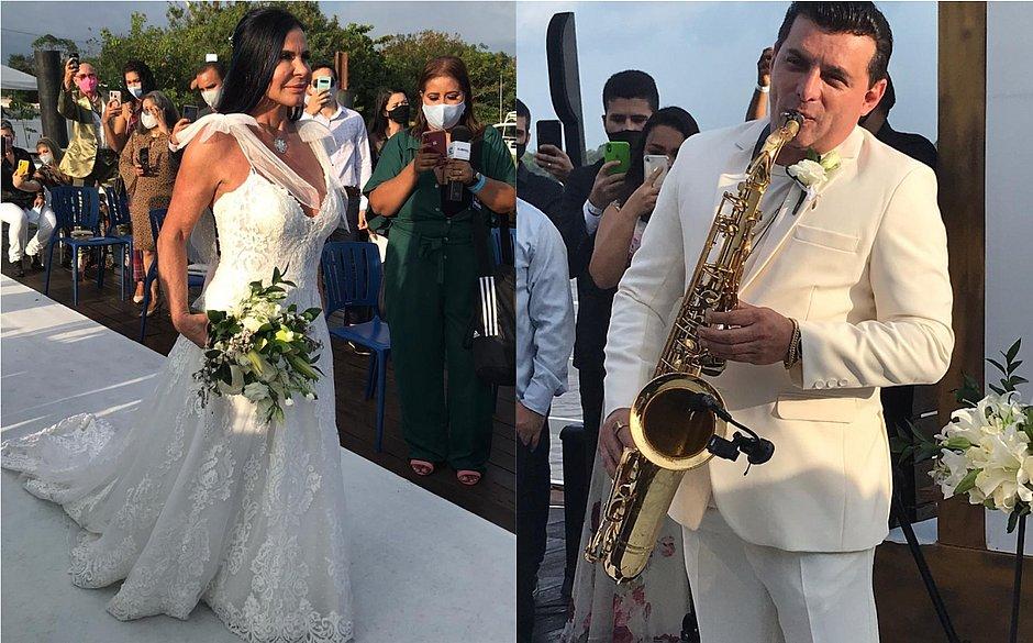 A cantora Gretchen, de 61 anos, chegou de barco, pontualmente às 17h desta quarta-feira (30), à cerimônia do seu 18º casamento, em Belém do Pará. A eterna rainha do rebolado se casou com o saxofonista paraense Esdras de Souza, 47.Barqueiros e ribeirinhos acompanharam o trajeto da noiva pelas águas. Cerca de cem convidados participaram da cerimônia que aconteceu em um flutuante sob as águas do rio Guamá. Com um vestido de renda em tom pérola e tênis, Gretchen subiu ao altar ao som de "Your Song", de Elton John.Na troca de alianças, os noivos revelaram apelidos da intimidade. Esdras chamou Gretchen de "minha morena" e a noiva o chamou de "baby boy"."Baby boy, aceite esta aliança que eu coloco em sua mão para que todos saibam o quanto eu amo você", disse Gretchen.A ex-dançarina ficou noiva em maio, justamente no dia em que completava 61 anos. O noivo, o saxofonista Esdras de Souza, fez o pedido e ela aceitou. Ambos se conheceram em março e estreitaram os laços durante a quarentena."Fiquei surpresa e muito feliz. Esdras é de uma tradicional família evangélica e gosta de fazer as coisas bem certas e estamos noivos e felizes", declarou a cantora que retornava à Europa para cuidar das filhas enquanto o noivo permanecia em Belém do Pará.Na festa, haverá pratos de "culinária saudável" e comidas típicas da cozinha paraense. Já o bolo terá cinco andares e será recheado com castanha do Pará.Gretchen conheceu Esdras em Belém, por intermédio de Fafá de Belém. Ela assistiu a uma apresentação do músico e o convidou para participar de um projeto dela, que mesclava saxofone e música eletrônica.